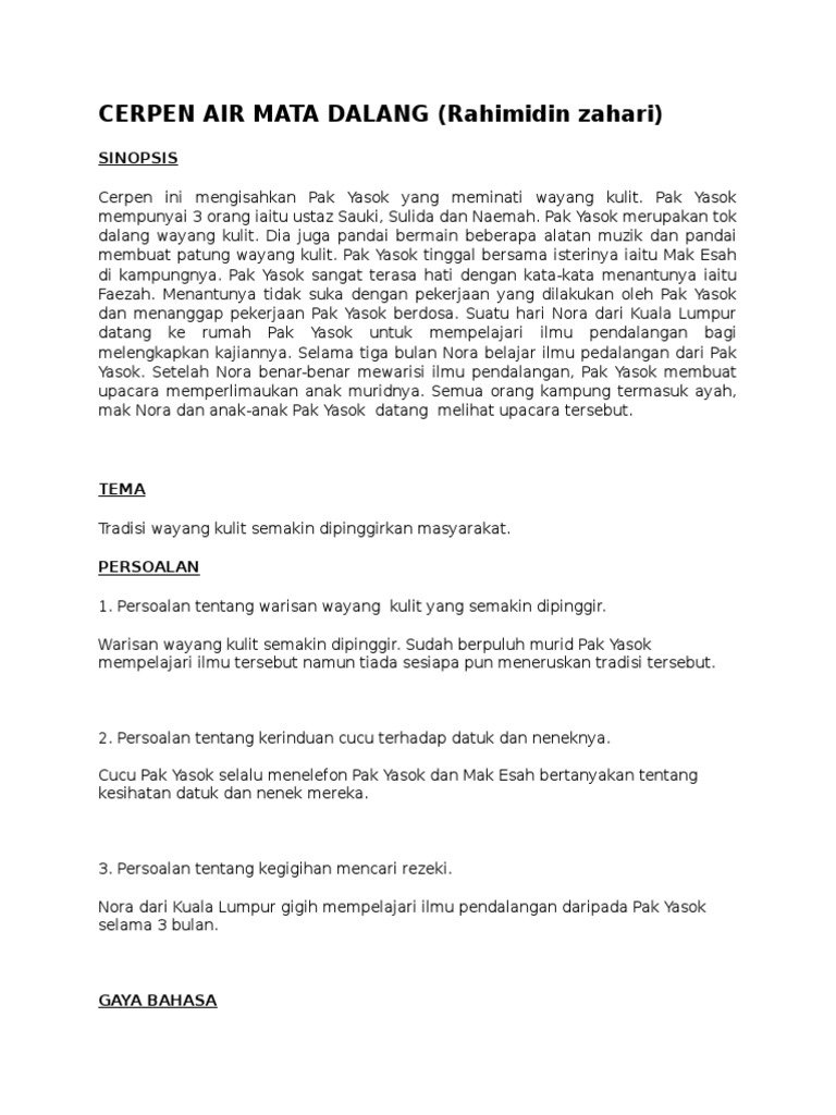 Apa saja unsur intrinsik dari cerpen yang berjudul Hujan musik dan …