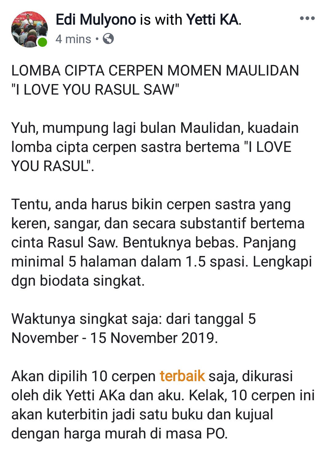 EDI AH IYUBENU on Twitter: “LOMBA CIPTA CERPEN SASTRA TEMA “I LOVE YOU RASUL”