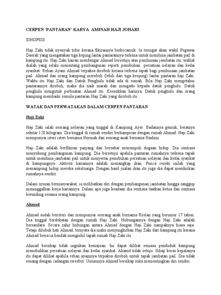 Nota cerpen ‘Pantaran’