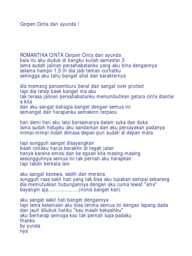 DOC) udul: Bunga dan Derita Kategori: Cerpen Sedih, Cerpen Remaja …