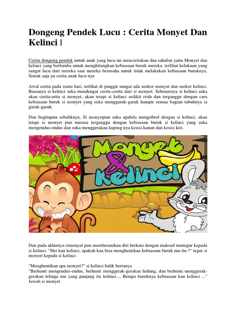 Dongeng Pendek Lucu - Cerita Monyet Dan Kelinci