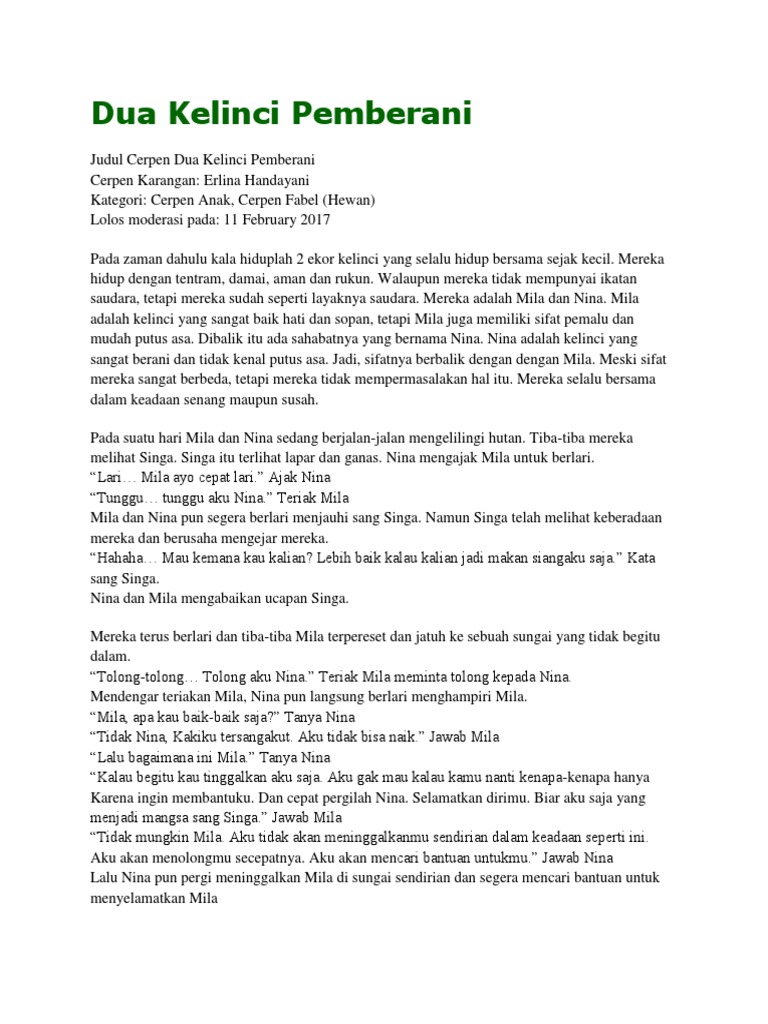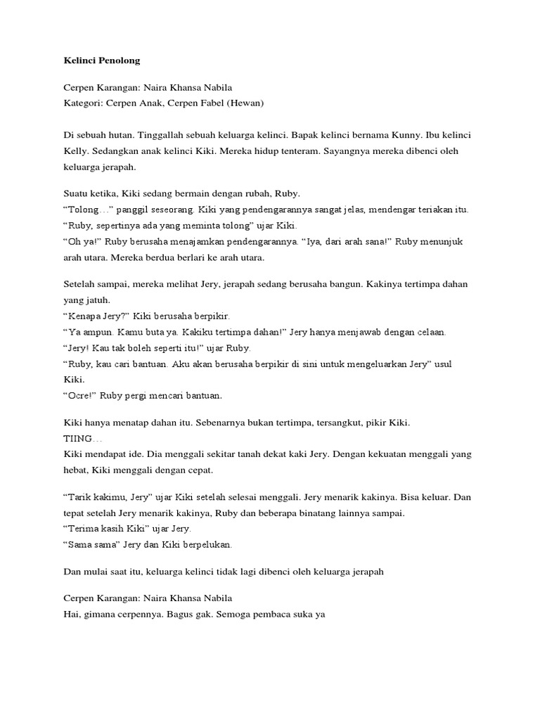 apa komentarmu terhadap tokoh kelinci dalam cerita” kelinci dan …
