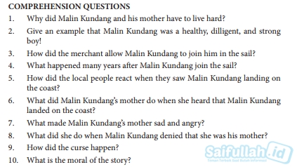 Jawaban Comprehension Question The Legend Of Malin Kundang Hal 173 - Saifullah.id