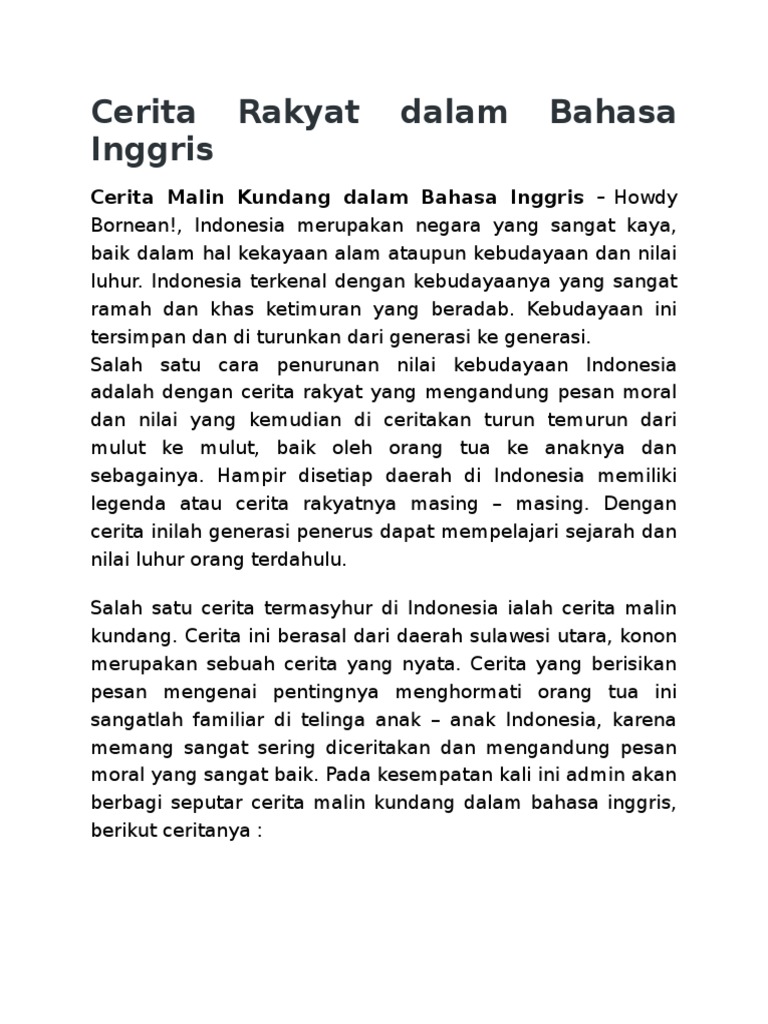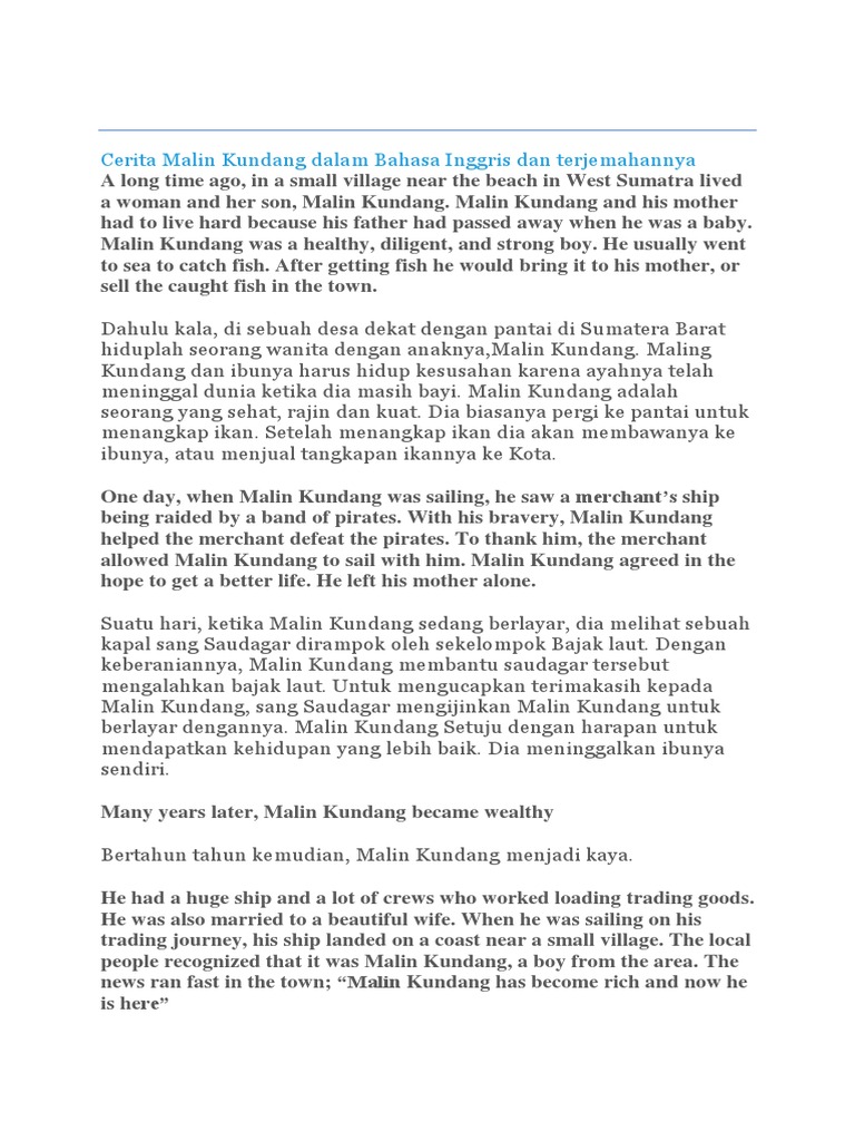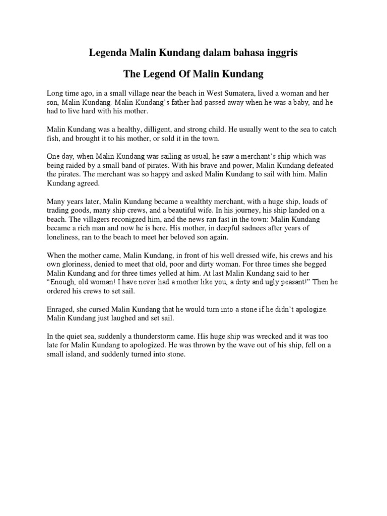 Contoh Cerita Malin Kundang Dalam Bahasa Inggris - Barisan Contoh