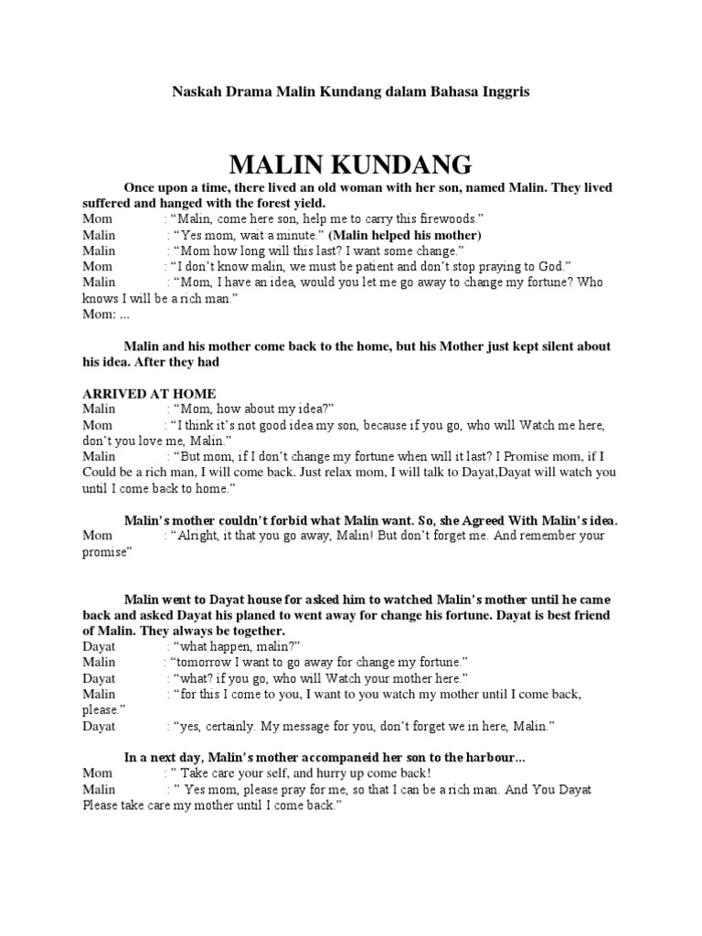 Naskah Drama Malin Kundang Dalam Bahasa Inggris