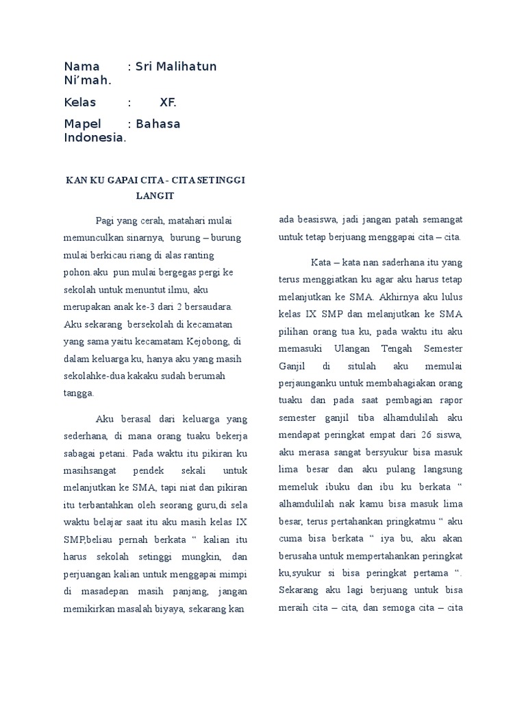 cerpen meraih cita cita setinggi langit | Kumpulan Peribahasa Indonesia
