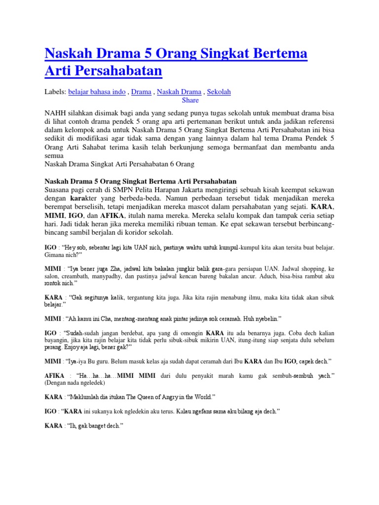 DOC) Contoh naskah drama persahabatan 5 orang | narenda wahyu …