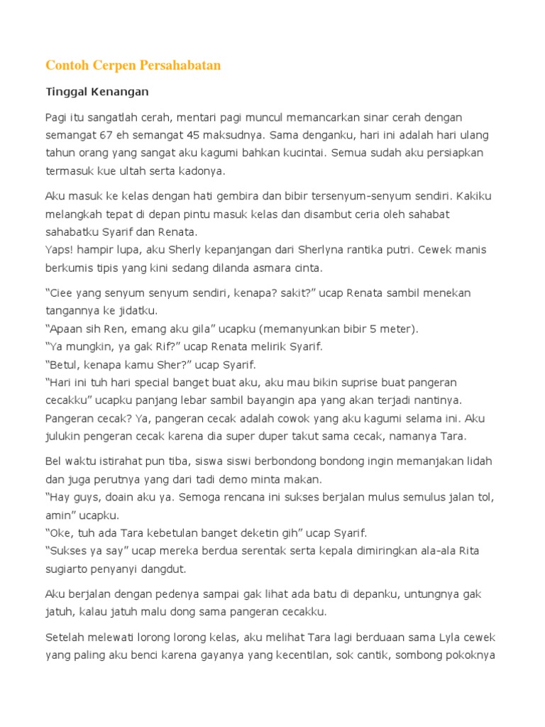Contoh Cerpen Remaja Tentang Persahabatan | Kumpulan Soal pelajaran 10