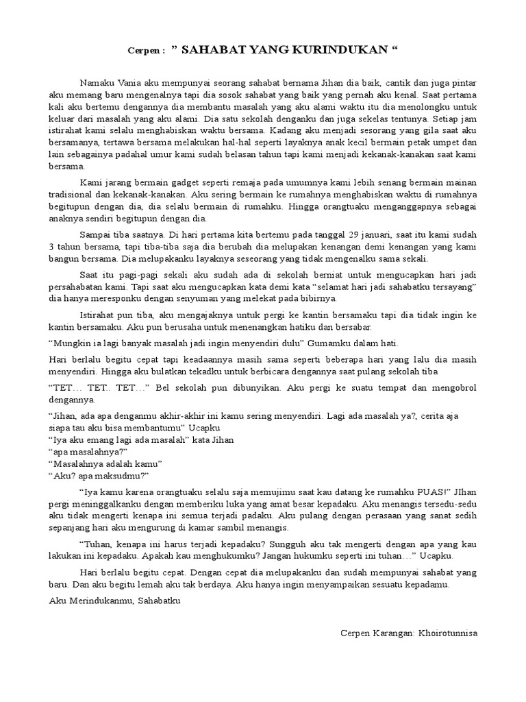 DOC) Cerpen Persahabatan Sejati | Shinta Zunita - Academia.edu