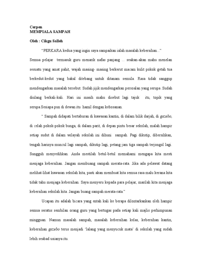 Tulisan-tulisan: Kumpulan Cerpen; Buang Sampah