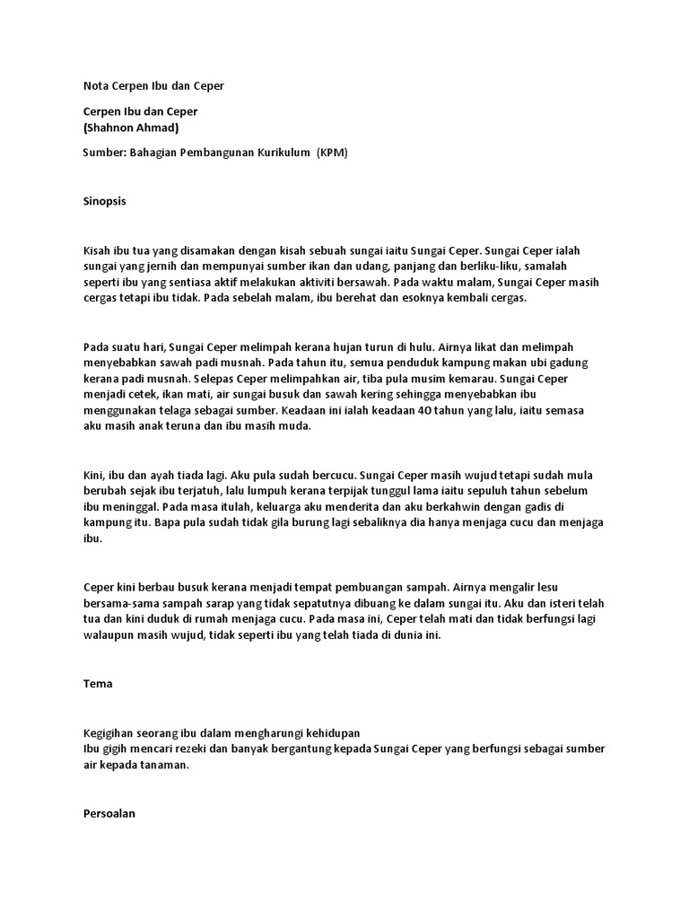 Cerpen Ibu dan Ceper (Shahnon Ahmad)