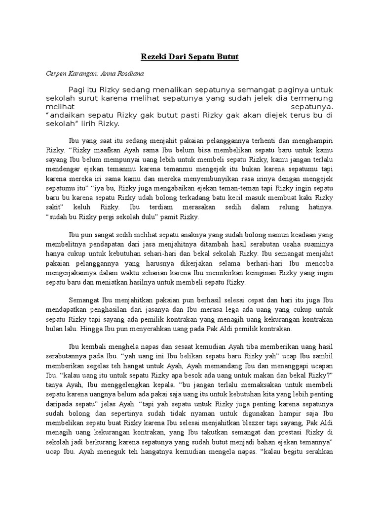 Lanjutkan cerpen SEPATU BUTUT secara bebas! ( jawabannya yang bebas ya bukan dari buku tapi dibuat - Brainly.co.id