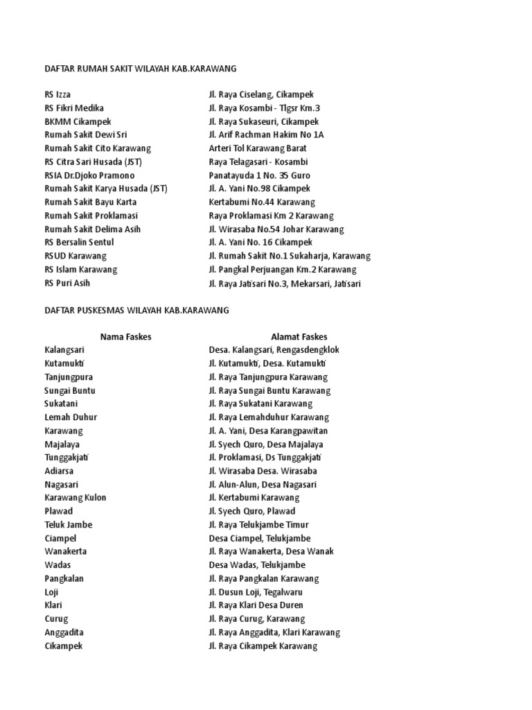 Daftar Faskes Kab Karawang