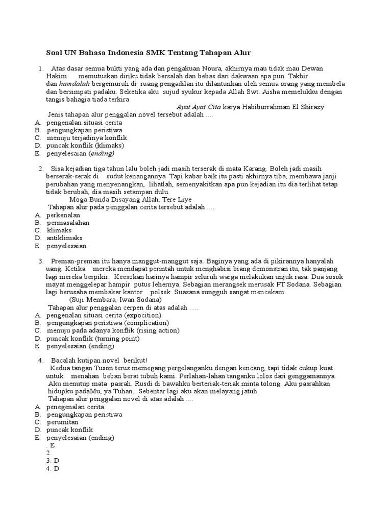 Soal UN Bahasa Indonesia SMK Tentang Tahapan Alur
