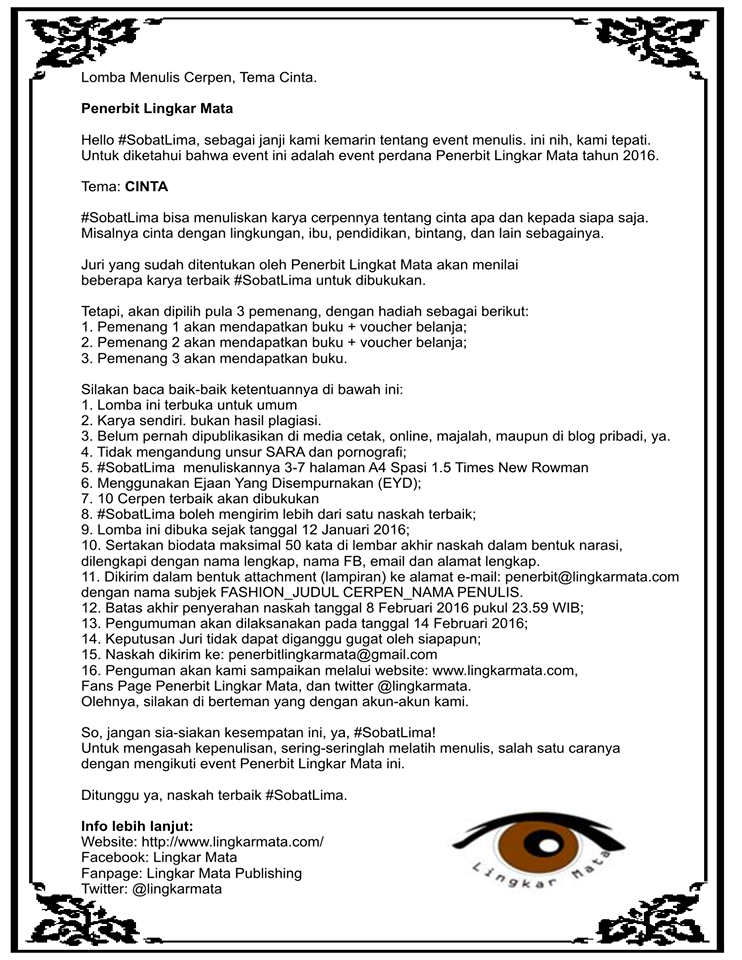 Lomba Menulis Cerpen Tema Cinta - Penerbit Lingkar Mata | Info Lomba Menulis