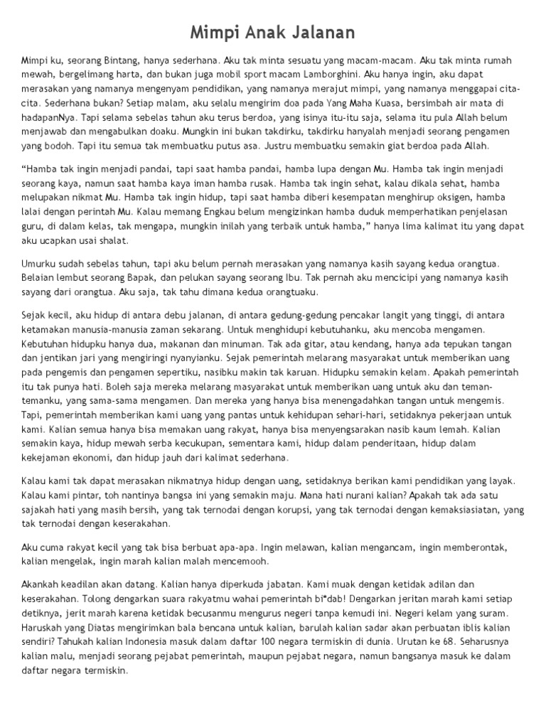 Cerpen: Impian Seorang Anak Jalanan - [PDF Document]