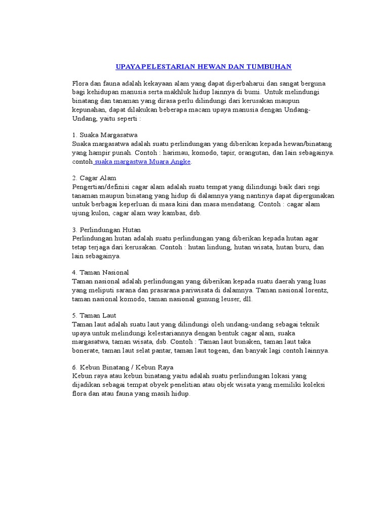 Upaya Pelestarian Hewan Dan Tumbuhan