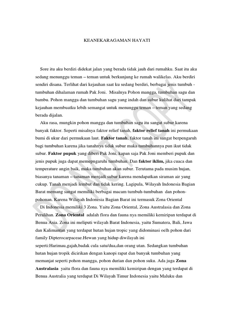 CERPEN TENTANG KEANEKARAGAMAN