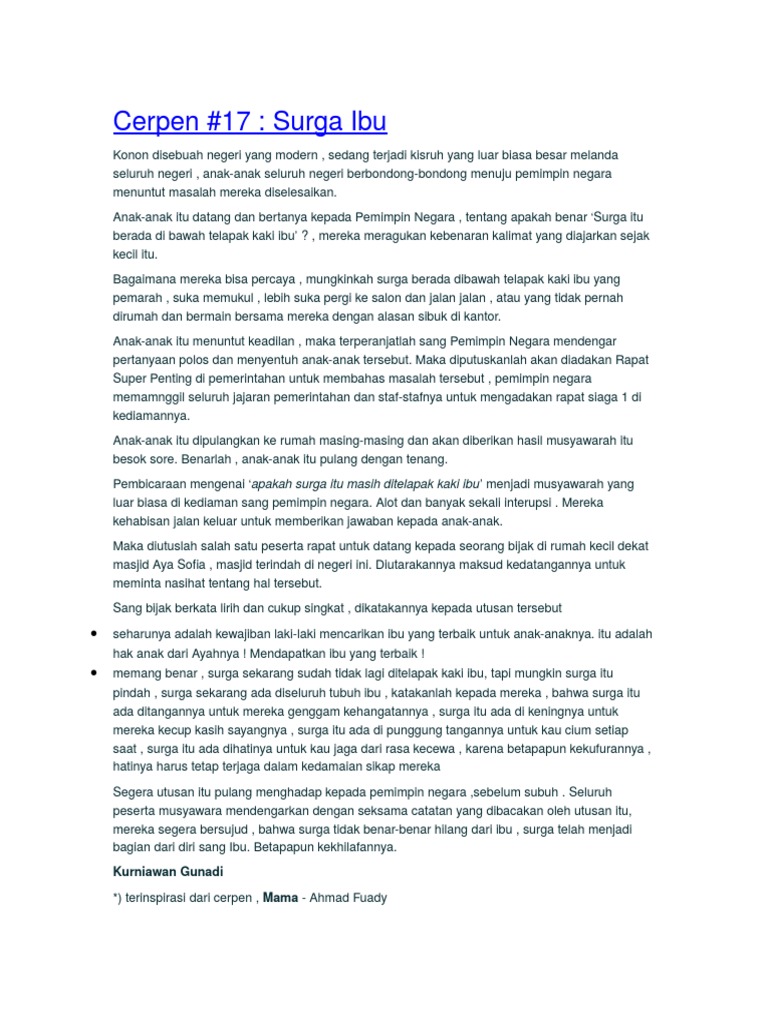 DOC) Cerpen : Ibuku, idolaku Ibuku Idolaku | Mochammad Yusron …