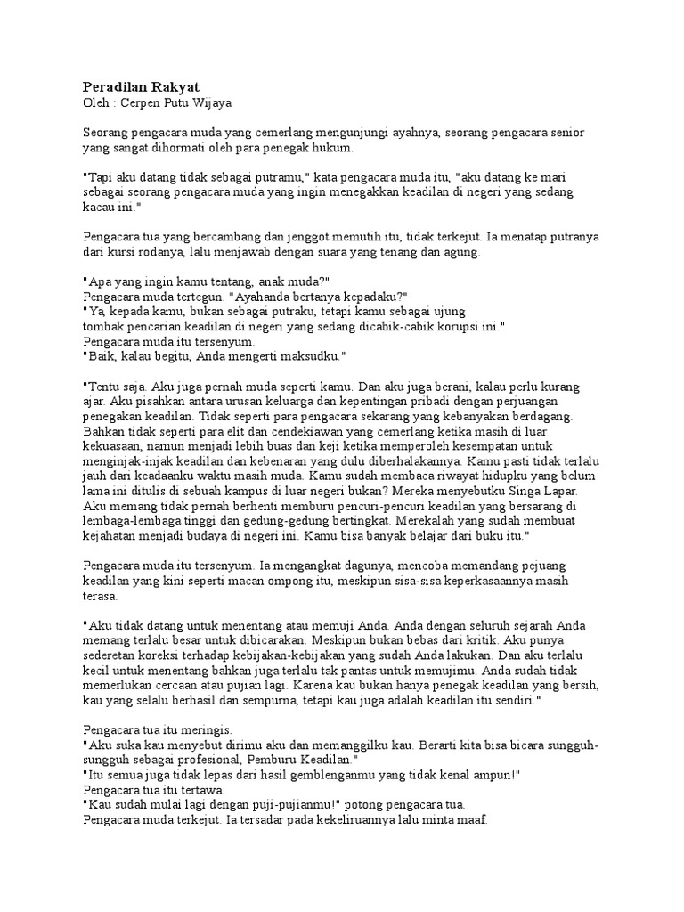 STRUKUR DAN NILAI MORAL CERPEN KEADILAN KARYA PUTU WIJAYA - PDF …