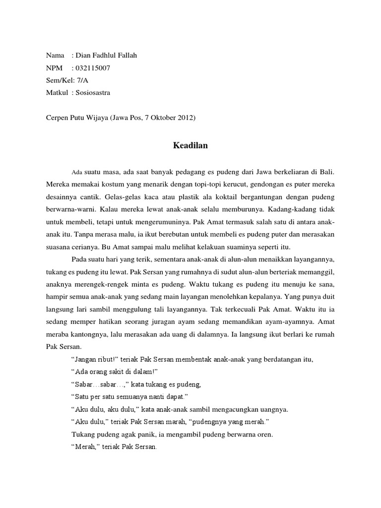 Baca cerpen berjudul Keadilan Karya Putu Wijaya Kemudian …