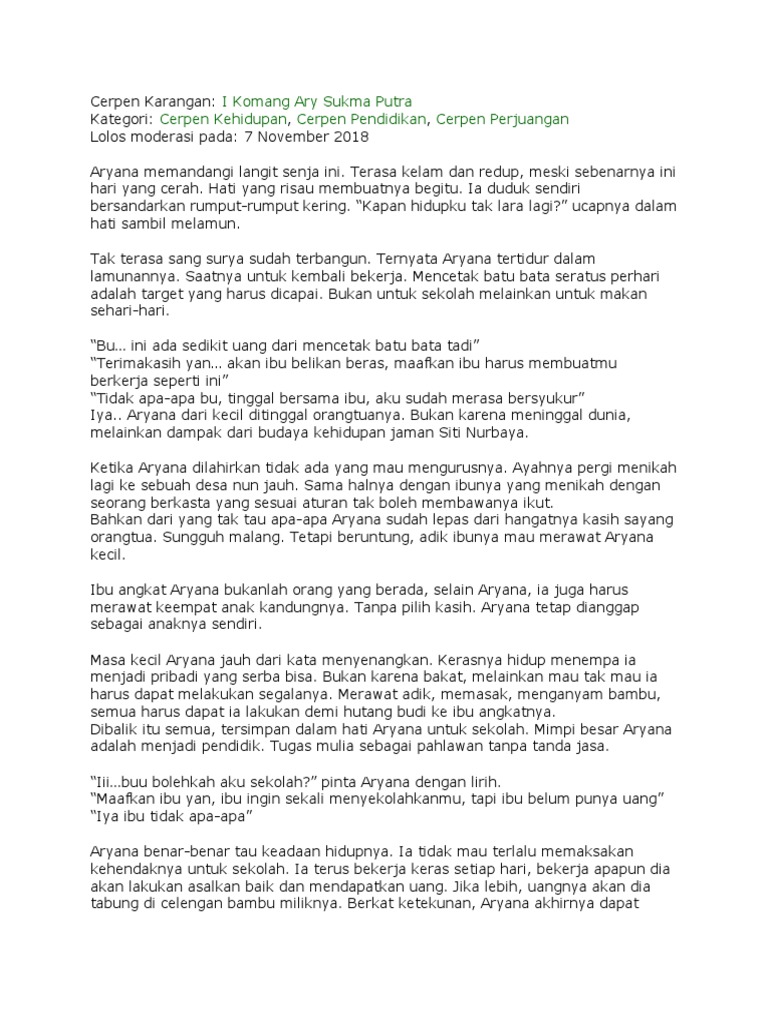 I Komang Ary Sukma Putra Cerpen Kehidupan Cerpen Pendidikan Cerpen Perjuangan