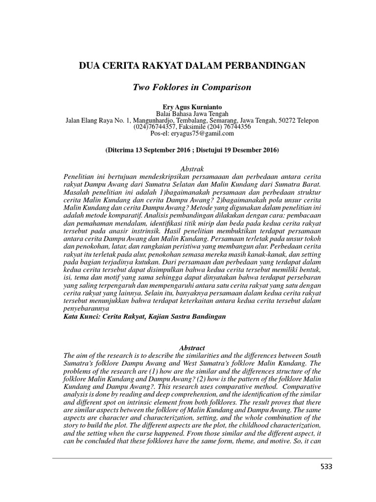 PDF) “Malin Kundang” Karya Wisran Hadi: Sebuah Perbandingan