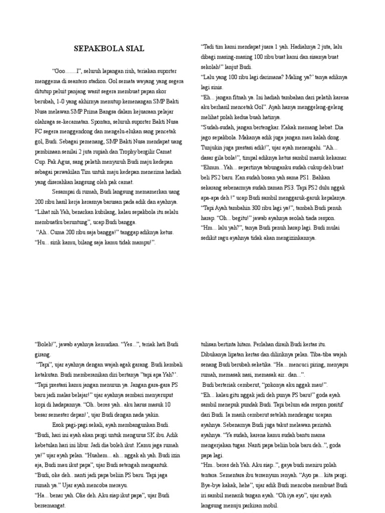 Berita Sepak Bola Hari ini: Cerpen Anak Sepak Bola