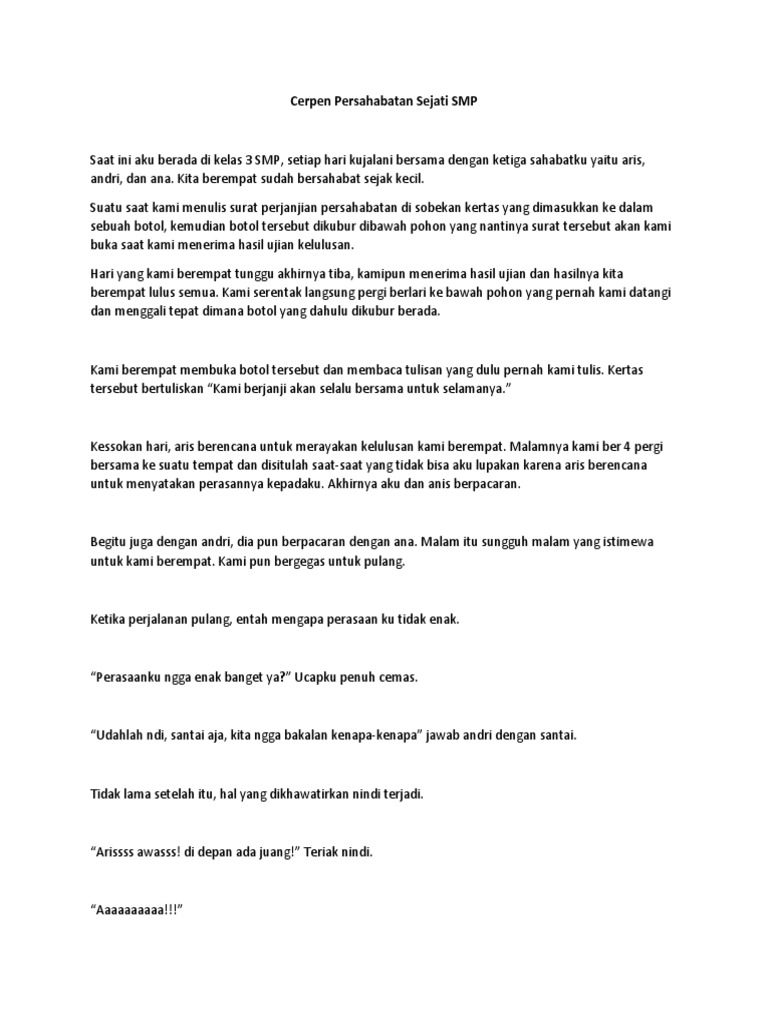 DOC) Cerpen Persahabatan Sejati | Shinta Zunita - Academia.edu