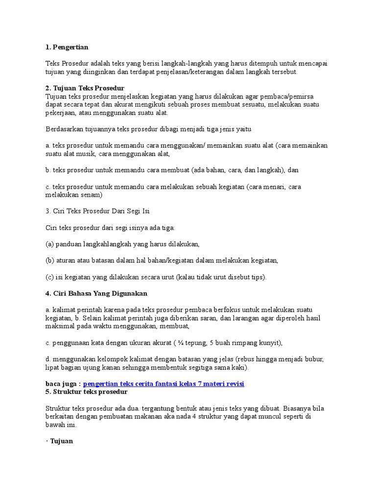 1) Tentukan isi teks prosedur yang telah dibaca!2) Identifikasilah struktur isi dan ciri - Brainly.co.id