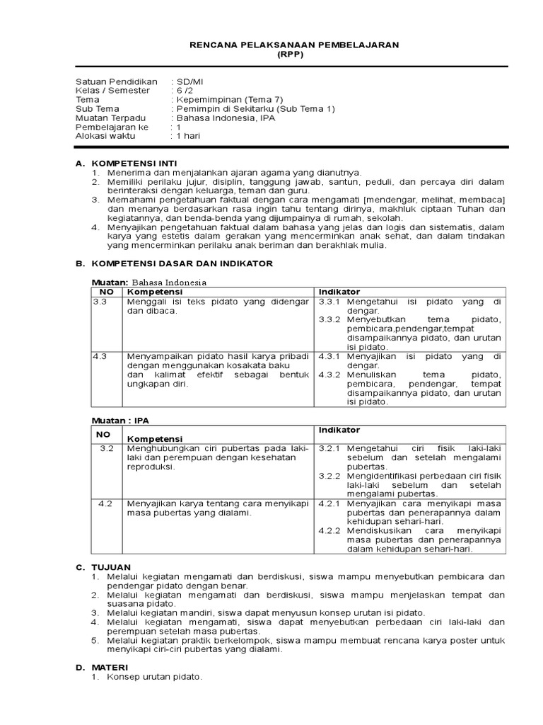 Rencana Pelaksanaan Pembelajaran (RPP): Bahasa Indonesia