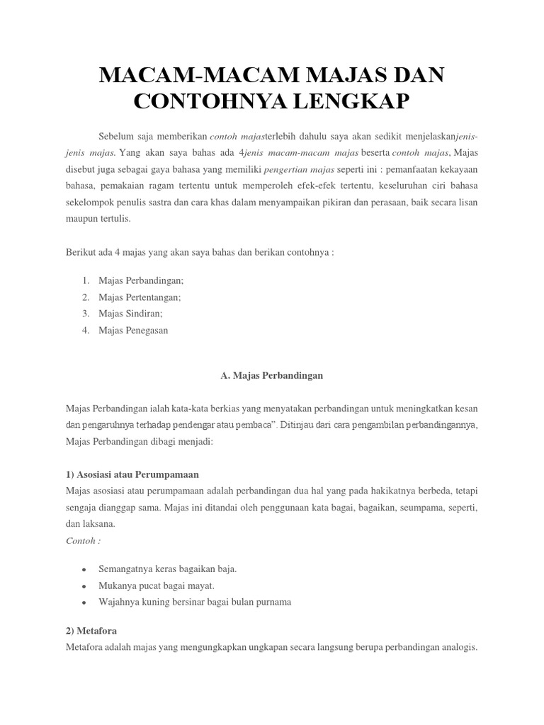 Macam-Macam Majas Lengkap dengan Contohnya - Gasbanter Journal