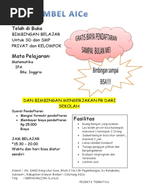 brosur les private - Guru Les Privat Datang Ke Rumah