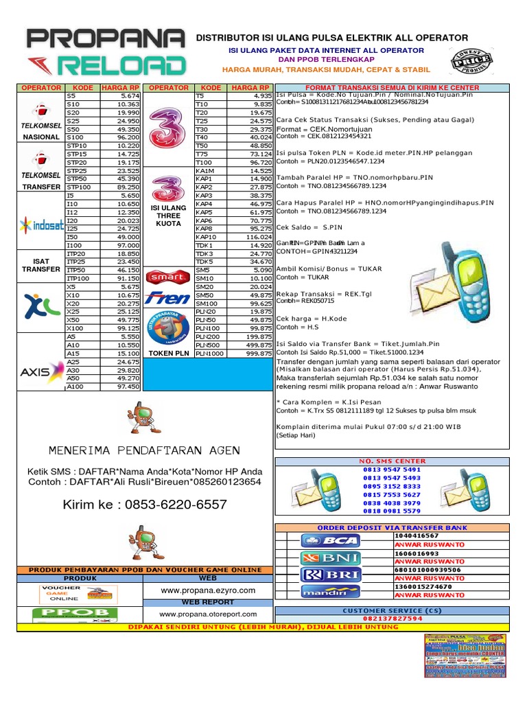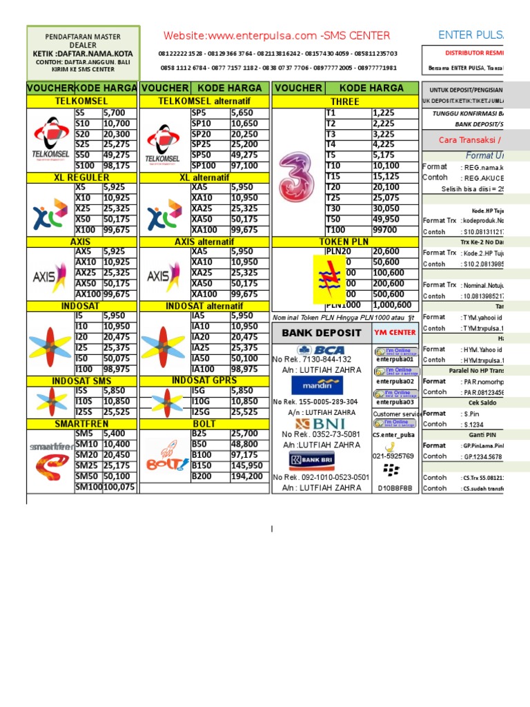 Pulsa Murah Stok Lengkap Transaksi Cepat Lancar: Brosur Pulsa Untuk Reseller
