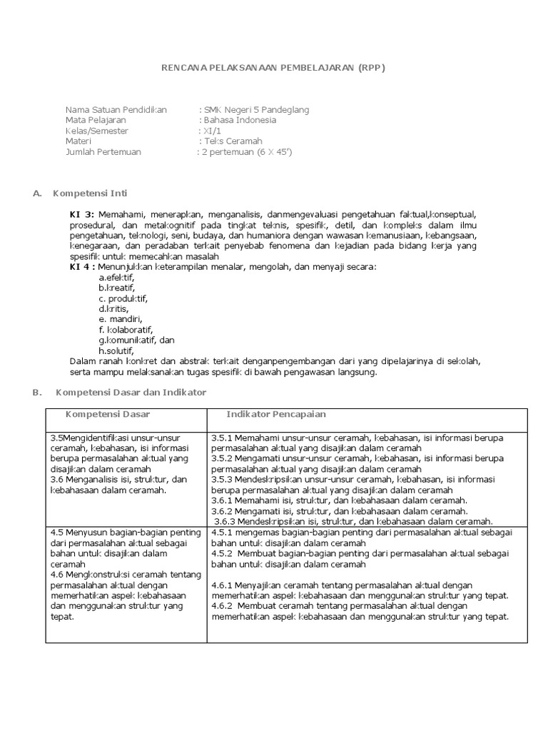 DOC) RPP TEKS PIDATO PERSUASIF KD 3.3 DAN 4. | Afif Fikri …