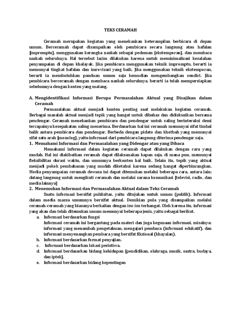 Contoh Teks Ceramah Singkat Bahasa Indonesia Kelas 11 - Berbagai …