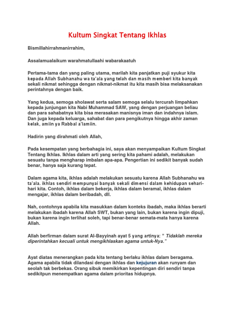 DOC) Makalah Agama tentang IKHLAS | Nadzer Turki Saputra - Academia.edu