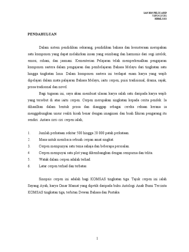 Pendahuluan: Ian Bin Felix Arip 710924135201 HBML3103