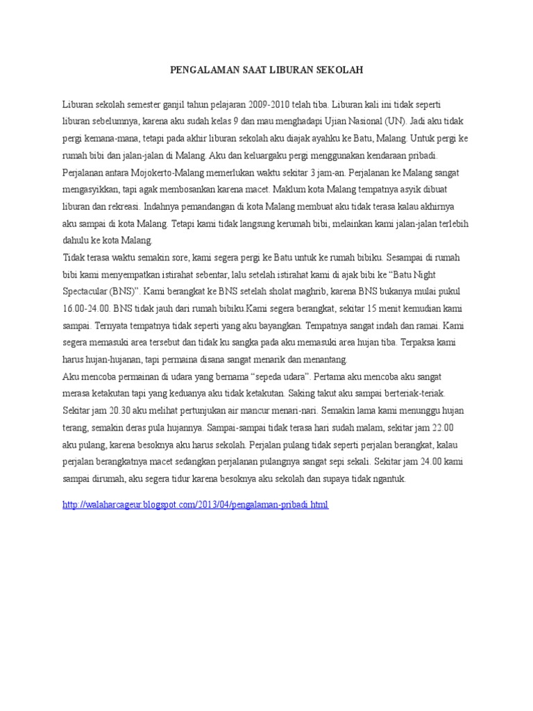CONTOH PENGALAMAN WAKTU LIBUR 150 KATA - Brainly.co.id