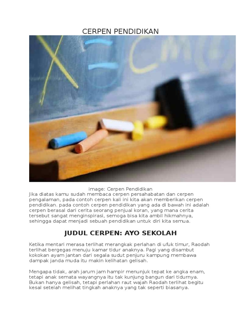 Contoh Cerpen Tentang Pendidikan | Kumpulan Soal pelajaran 10