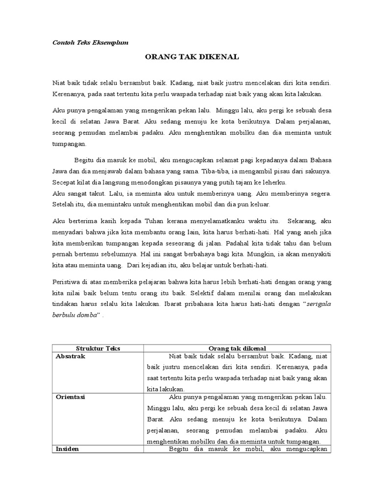 Struktur Teks Eksemplum Orang Tak Dikenal