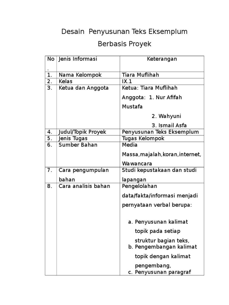 Desain Penyusunan Teks Eksemplum Berbasis Proyek