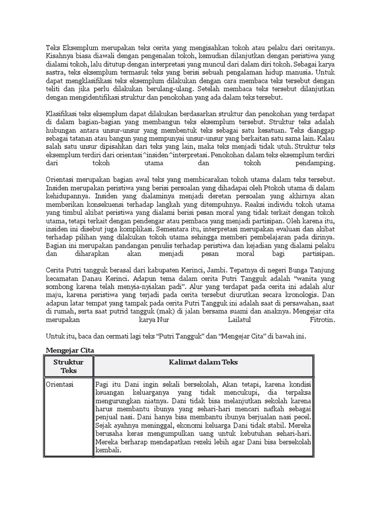 Contoh Teks Eksemplum Dan Struktur Teksnya - Berbagai Struktur