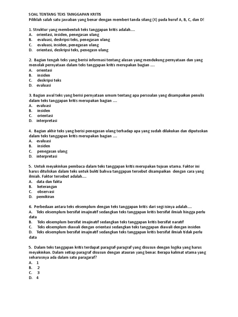 Soal Tentang Teks Tanggapan Kritis