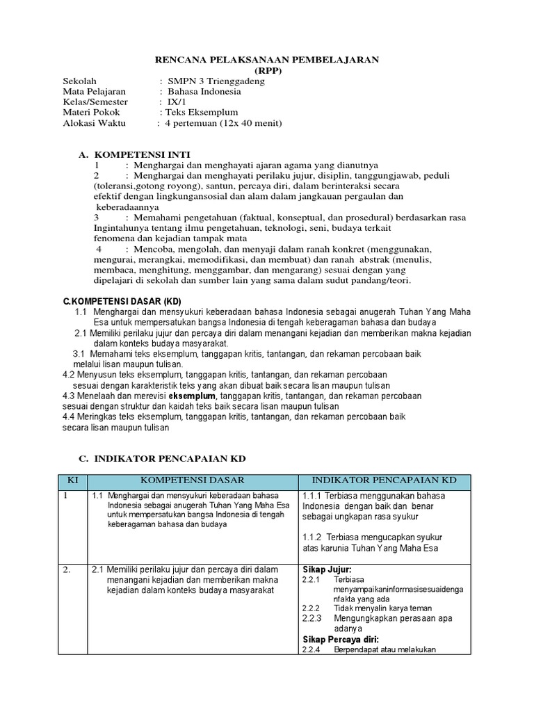 RPP SMP Bahasa Indonesia Kelas IX