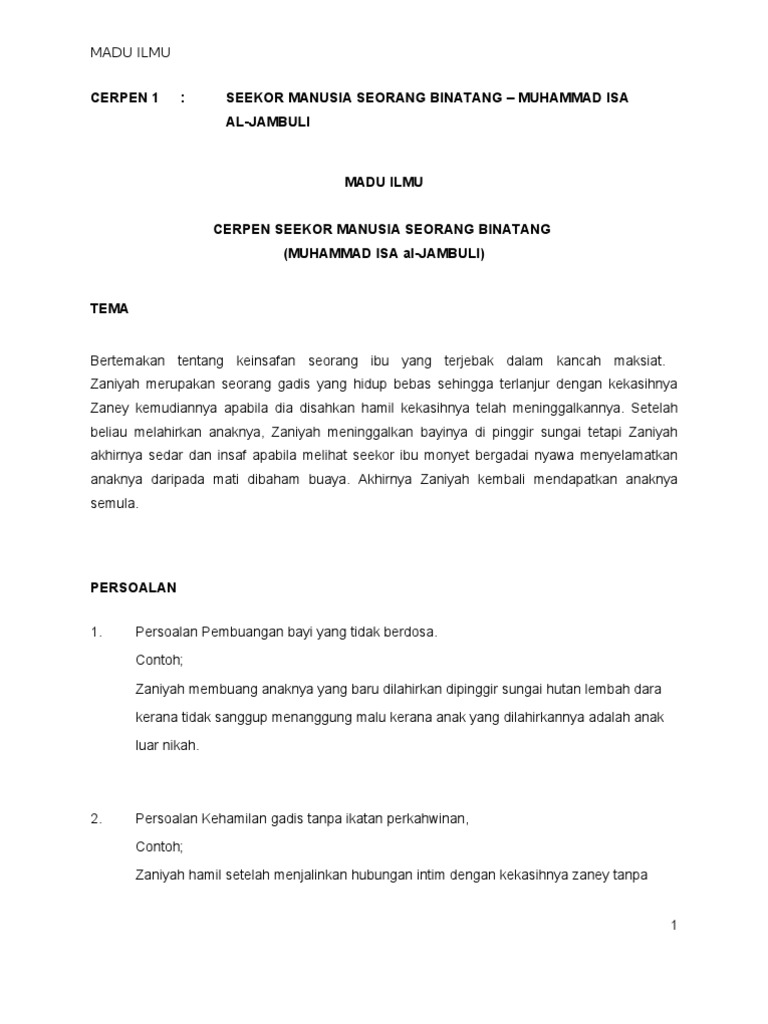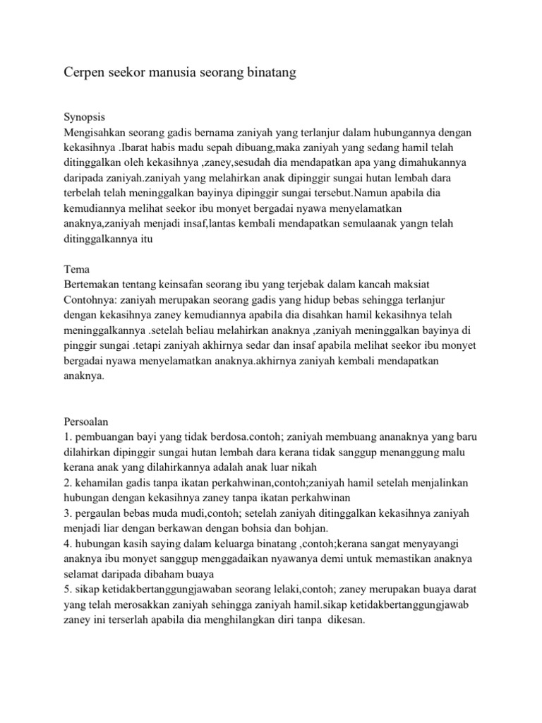 Kajian Cerpen Seekor Manusia Seorang Binatang