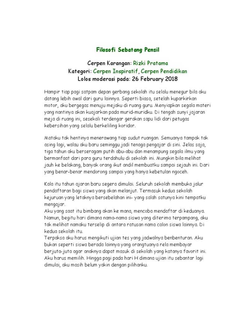 Contoh Cerpen Yang Lolos Lomba