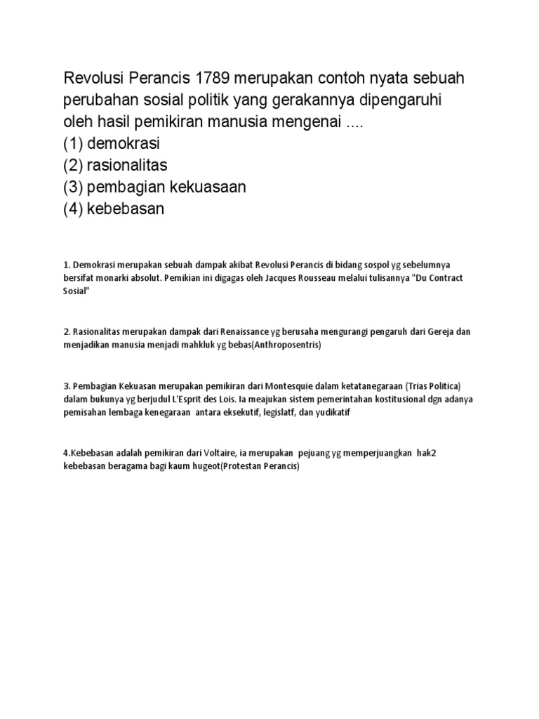 Sejarah Revolusi Perancis 1789 Merupakan Contoh Nyata Sebuah Perubahan Sosial Politik Yang Gerakannya Dipengaruhi Oleh Hasil Pemikiran Manusia Mengenai