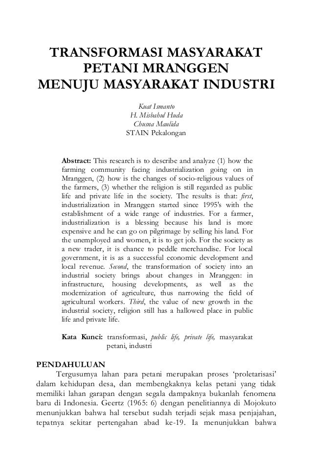 Kusnul Kotimah: Perubahan Sosial Dari Masyarakat Agraris Ke …