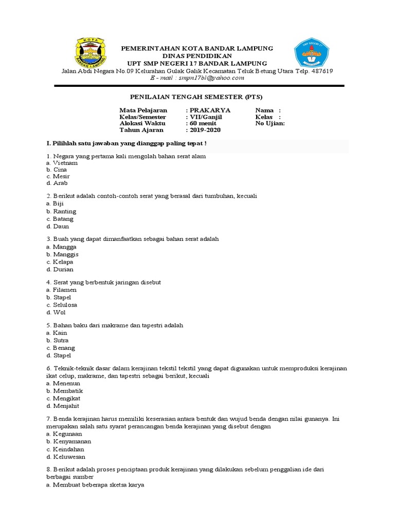80 Soal dan Jawaban Prakarya Kelas 7 Terbaru - Kherysuryawan.id